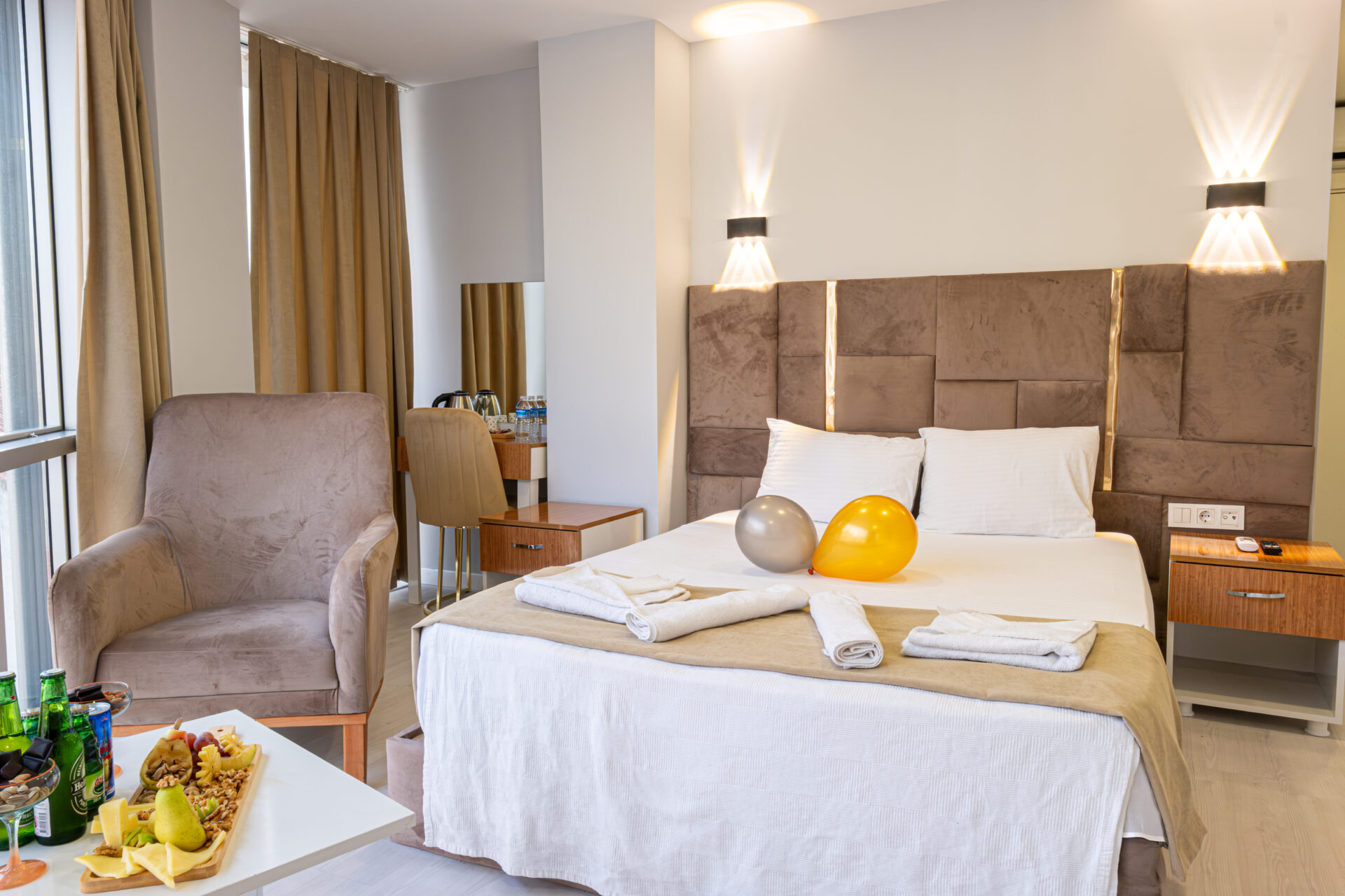 Standart Oda 50 m2 2 Misafir 1 Yatak 1 Banyo Free WIFI Air Conditioning ₺1800/Gece Oda İmkanlarımız Air conditioner TV Wifi & Internet Havlu Terlik Şampuan Çay Kahve Makinası